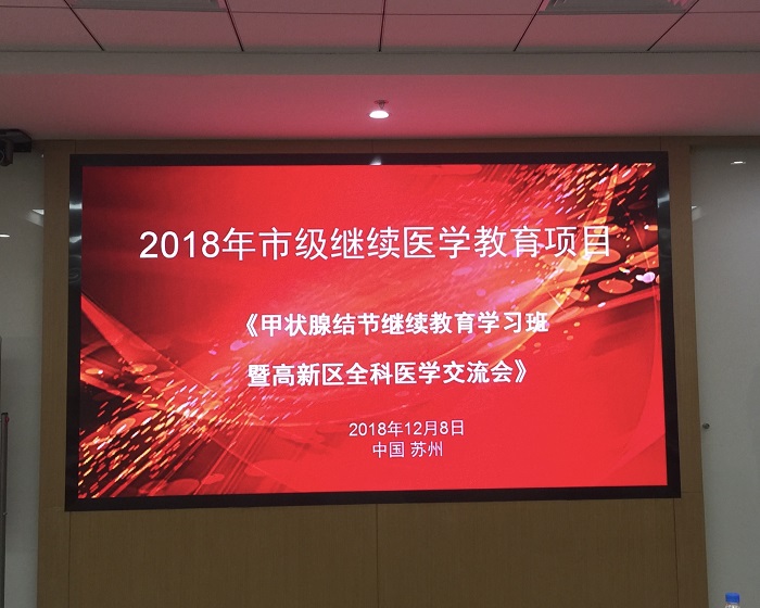 伴随着苏城第一场冬雪来临,12月8日,我院举办了甲状腺结节继续教育学习班暨高新区全科医学交流会,旨在规范甲状腺结节和甲状腺相关疾病的诊断和治疗,此次大会邀请了内分泌、影像超声、病理、头颈外科、核医学科等不同领域的专家进行授课,并现场演示甲状腺结节细针穿刺和甲状腺结节微波消融术。来自苏州各大医院、社区的同仁一同参加本次学习班。