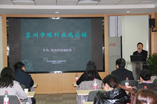 12月9日, 我院成功举办眼科疾病论坛学习班。苏州各个兄弟医院的眼科同仁们冒着严寒早早的来到会议现场,一时间台下座无虚席。在热烈声中、期待中,会议慢慢拉开了帷幕。苏州市卫计委副主任沈洁,苏州医学会秘书长谭秋生,苏州市眼科学会主任委员陆培荣以及全国人大代表、江苏省医学会眼科分会主任委员李甦雁生先后致词。大会由苏州大学附属一院眼科主任陆培荣和苏州眼耳鼻喉医院院长陈正华共同主持。会议内容丰富多彩,大家踊跃提问,在热烈的氛围中广大眼科同仁们在一起共同学习交流。