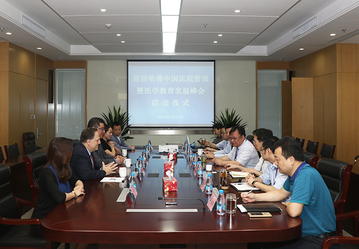 今天(7月11日)上午,首届哈佛中国医院管理暨医学教育发展峰会启动仪式在我院行政楼四楼会议室举行。来自美国哈佛医学院的医学教育院长Fidencio Saldana教授,临床技能中心主任、美国心脏协会(AHA)创始人MA主席、中美医学发展基金主席Charles Pozner教授,哈佛医学院教授、美国麻省总医院放疗科及肿瘤科教授Wang Meng,中美医学发展基金会吴秋婷女士出席本次启动仪式。市卫计委副主任、我院院长沈洁,副院长王诚、卢建林、王琛、钮金英、吴雪良及相关科室负责人出席活动。