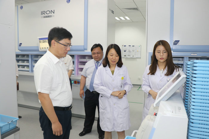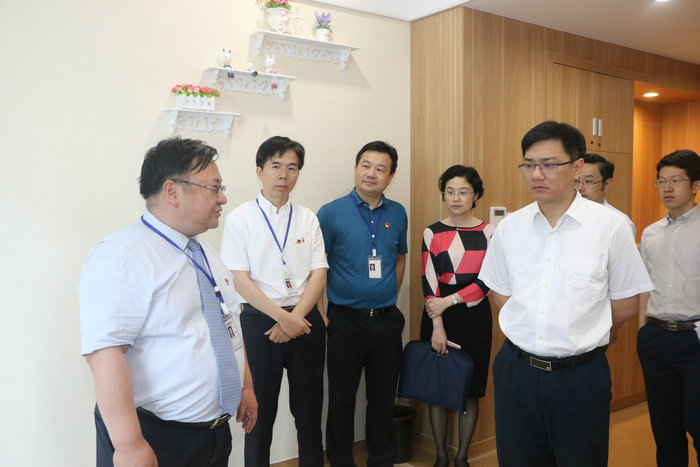 王牟副主任一行在沈洁院长的陪同下,分别参观了我院药房、影像科、内镜中心、手术室、ICU、家庭化产房、急诊等区域。在全面了解我院配备的智能化设施设备及先进的医疗设备,实地考察我院的日常运营情况后,调研组一行在行政楼四楼召开专题座谈会,听取沈洁院长及各位副院长的专题报告。