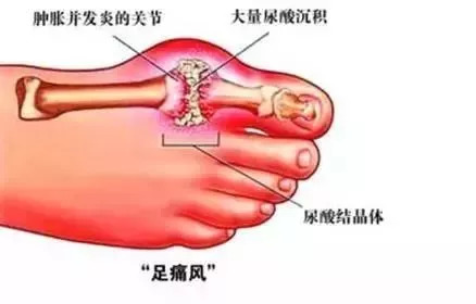 痛风是由尿酸盐沉积所致的晶体相关性关节病,与嘌呤代谢紊乱和(或)尿酸排泄减少所致的高尿酸血症直接相关,特指急性特征性关节炎和慢性痛风石疾病,主要包括急性发作性关节炎、痛风石形成、痛风石性慢性关节炎、尿酸盐肾病和尿酸性尿路结石,重者可出现关节残疾和肾功能不全。痛风常伴腹型肥胖、高脂血症、高血压、2型糖尿病及心血管病等表现。