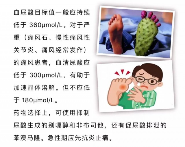 血尿酸>480μmol/L 的前提下,痛风性关节炎发作 1 次,或无痛风发作,伴下列任何一项因素:尿酸性肾结石或轻度肾功能损害、高血压、糖耐量异常或糖尿病、血脂紊乱、冠心病、卒中、肥胖、心功能不全。