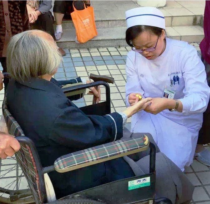 行动不便的患者独身就医,护士和保安全程温馨陪同