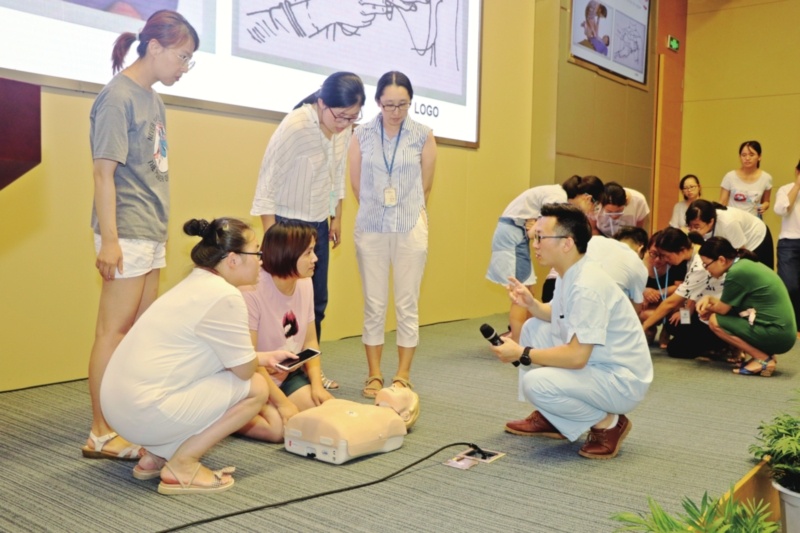 苏报讯(科医萱)9月26日下午,“第一时间救援”急救大行动走进苏高新集团及苏高新股份。课程由苏州科技城医院门急诊科护士李伟主讲,他向大家介绍了常见意外伤害护理及儿童急救知识,重点介绍并现场演示了心肺复苏技能。