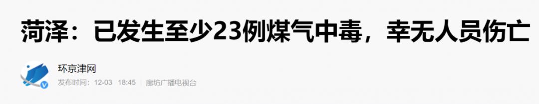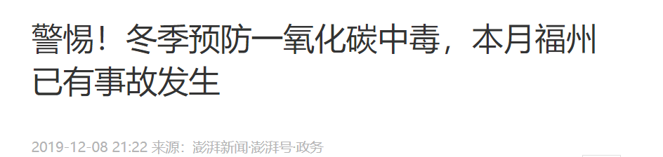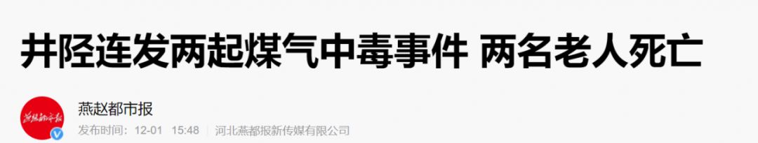 事实上,每到冬季,一氧化碳中毒事件就时有发生。日前,广西南宁市就发生了母女三人因一氧化碳中毒导致1死2伤的悲剧。